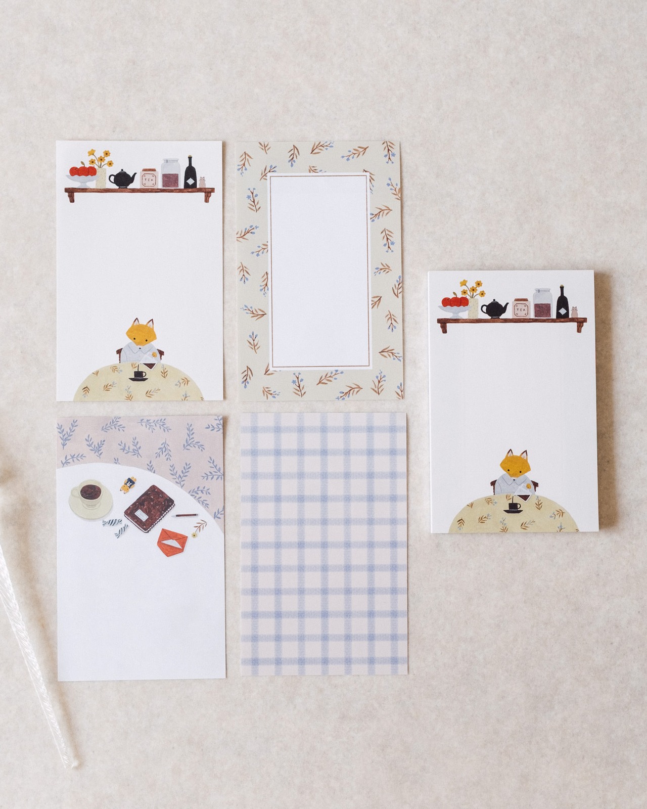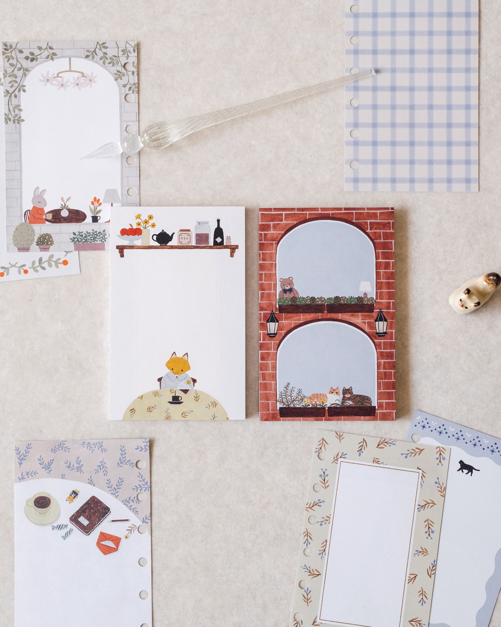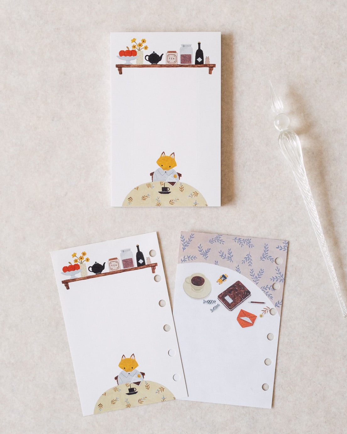 お部屋で過ごす穏やかな時間をテーマに描いたノートパッドです。