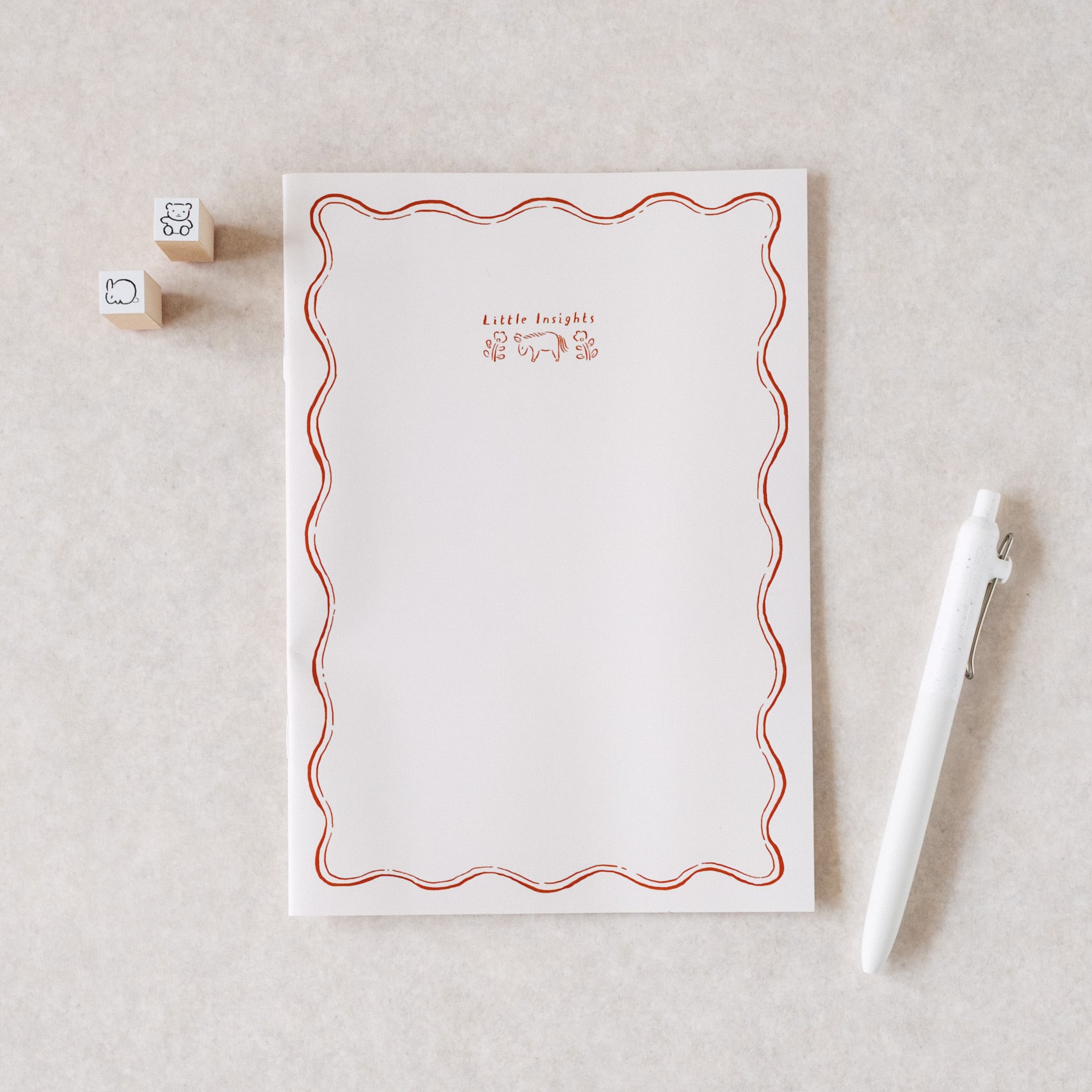 アイボリーにはlittle insights(小さな気づき)、ブラックにはlet it flow(漂うままに)というメッセージを入れました。日々の何気ない出来事や気持ちを気軽に書いてもらえる場所になればいいな、と思っています。